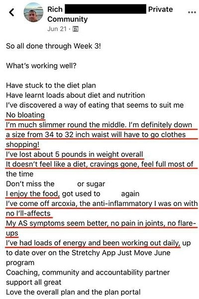 No joint paint, total mental clarity, and a huge amount of energy now. I don't feel my age now, and I'm 53. I loved it and have never learned so much about listening to my body to make the right decisions - so empowering! Thank you!
